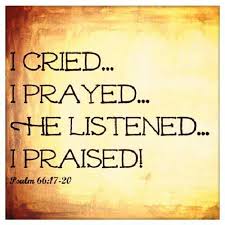 Gee nooit moed op nie en agterna sal jy ook kan sê: "Die lof kom God toe wat my gebed nie afgewys en Sy trou nie van my weerhou het nie" ....Ps 66:20